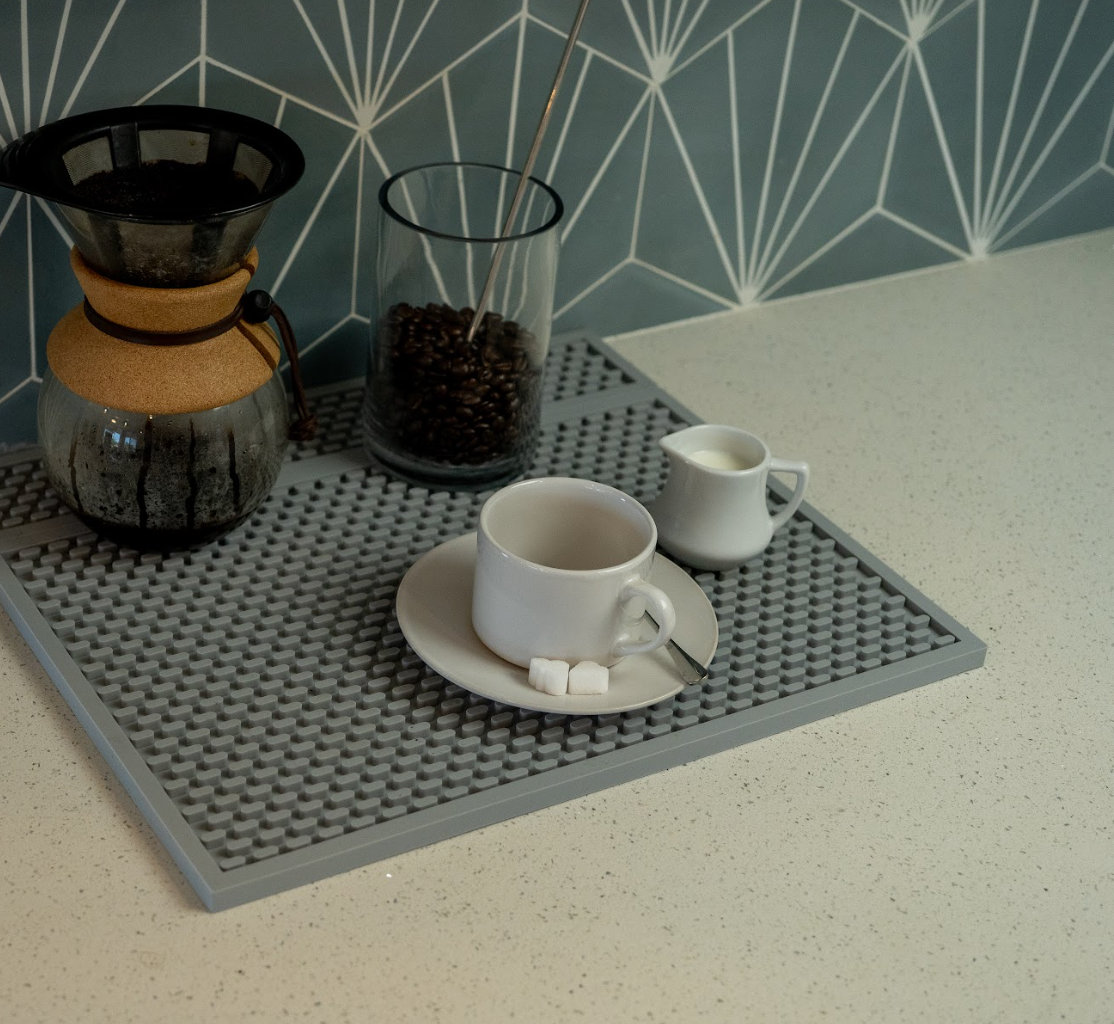 Thank you for taking the time to share your positive experience with our Gray Silicone Bar Mat. We are thrilled to hear that you love the quality and functionality of the mat, as well as the color matching your countertops. We take pride in offering products that are both durable and aesthetically pleasing. Thank you for recommending our product!